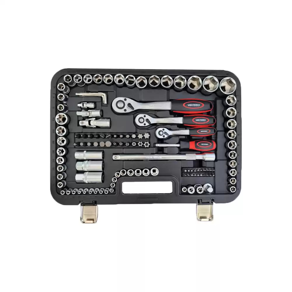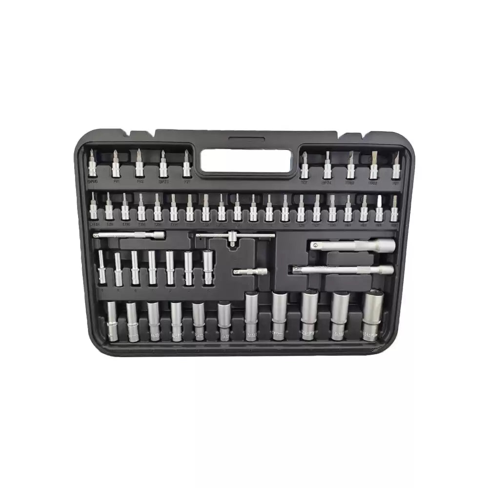 Doppenset 1/4" - 3/8" - 1/2" van professionele kwaliteit met 171 stuks gereedschap van gepolijst en verchroomd Chrome Vanadium staal.