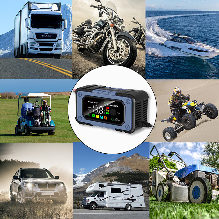 De benodigde laadtijd is afhankelijk van de ontlaadgraad en de daadwerkelijke capaciteit van de accu. De lader is geschikt voor het opladen van accu’s in auto’s, motorfietsen, boten, grasmaaiers, landbouwvoertuigen en quads.