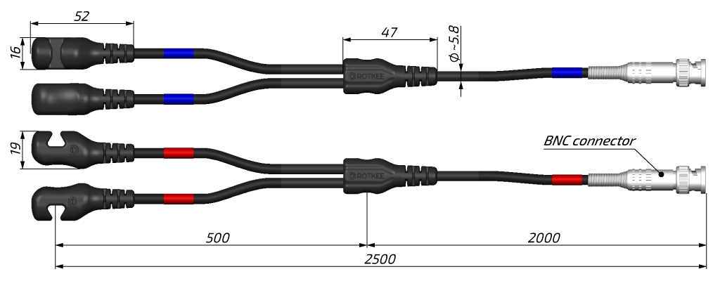 De sensoren zijn kleurgecodeerd, omdat de diagnosetechniek bestaat uit het bepalen van de polariteit van hoogspanningsdraden en het aansluiten van de juiste sensoren daarop, rood of blauw.