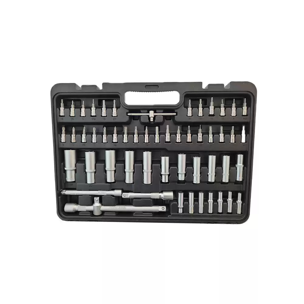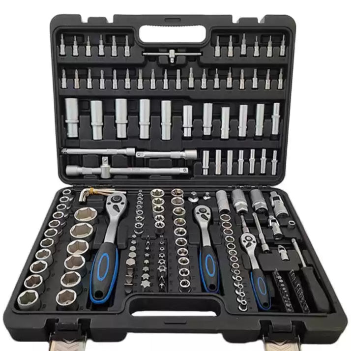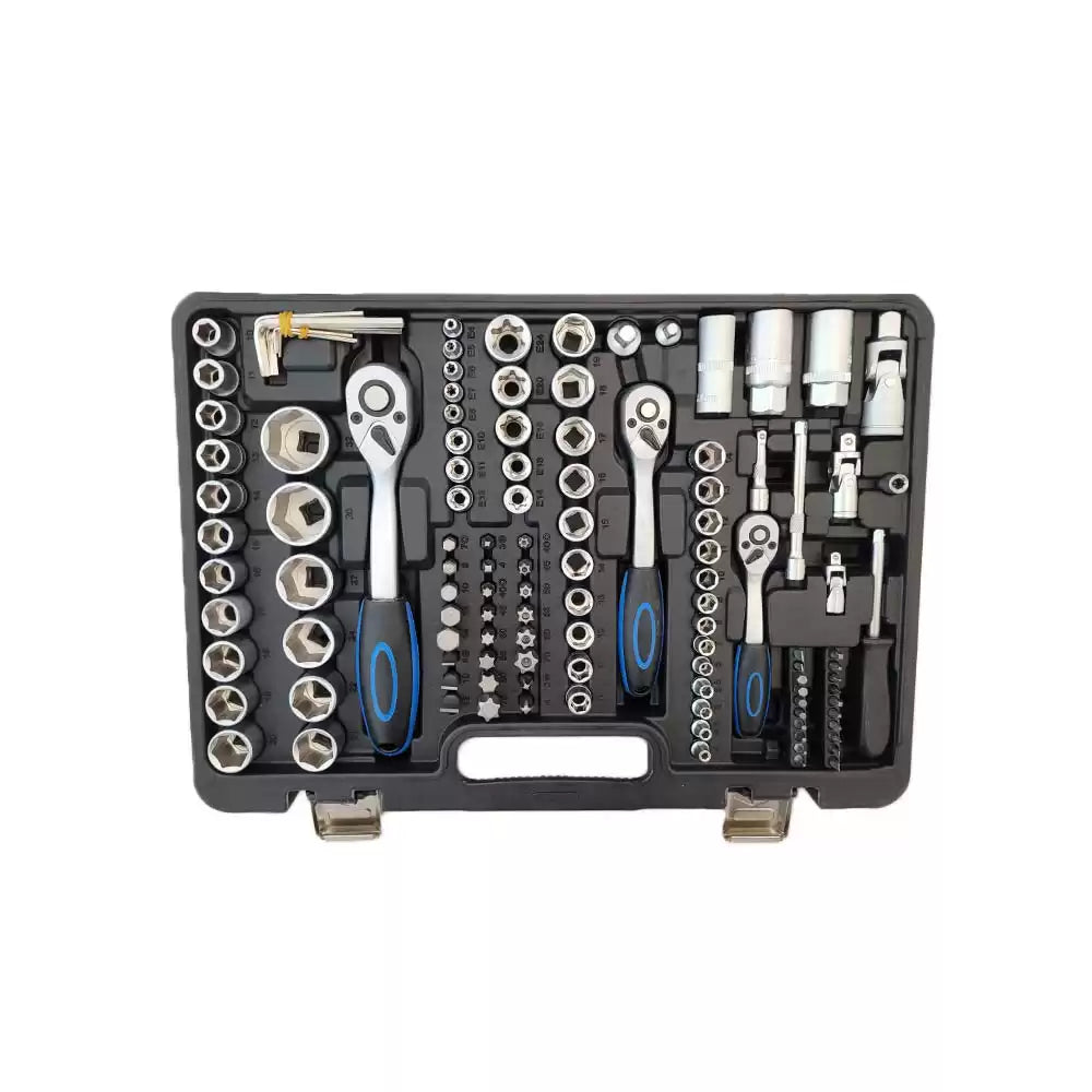 Doppenset 1/4" - 3/8" - 1/2" met 171 stuks gereedschap van gepolijst en verchroomd Chrome Vanadium staal.