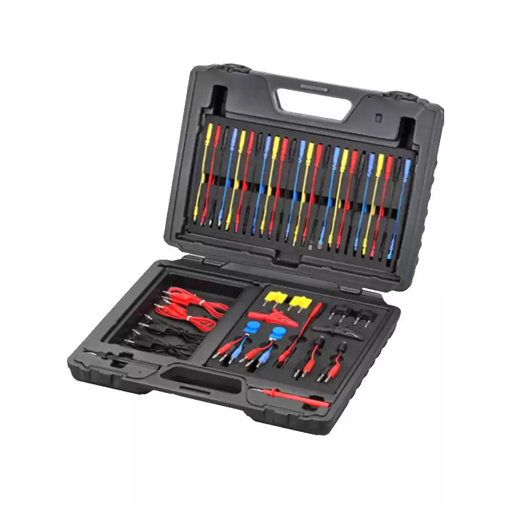 Uitgebreide set meetsnoeren en onderdelen geschikt voor het testen, opsporing en onderzoek van automotive elektronische schakelingen.