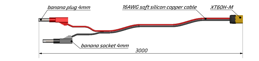 Voedingskabel – banaan naar TX60-M connectoradapter – 1 stuk