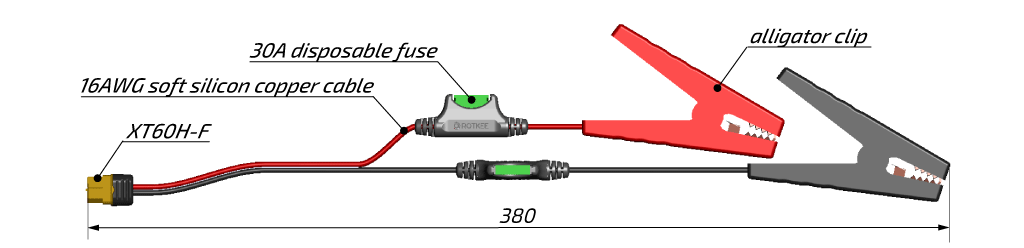 Krokodillenklemmen naar XT60-F connectoradapter met zekeringen – 1 stuk