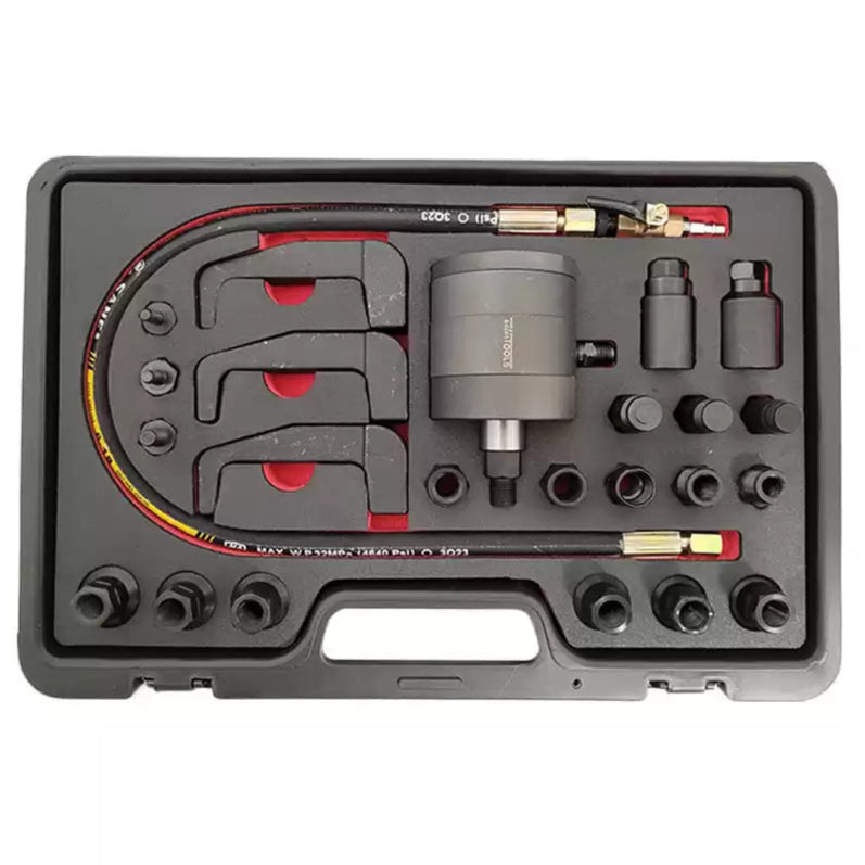 Pneumatische diesel injector slagtrekker set voor het verwijderen van vastzittende injectoren zonder het demonteren van de cilinderkop.