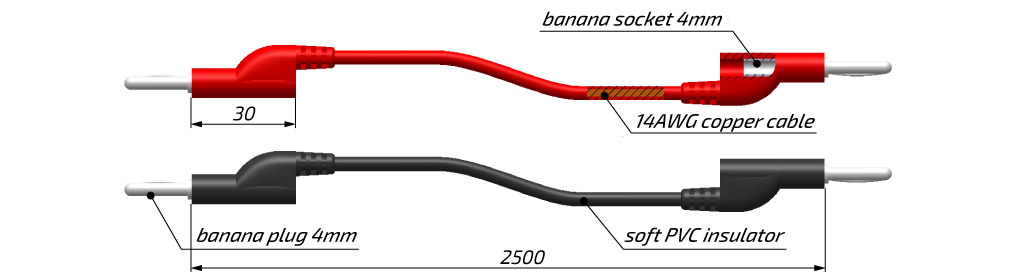 De verlengkabels zijn gemaakt van een flexibele PVC-kabel. Met behulp van een standaard 4 mm banaanstekker kun je meetsnoeren eenvoudig aansluiten/loskoppelen/verwisselen. De stekker is compatibel met meetsnoeren van andere fabrikanten en multimeters. De kabels zijn kleurgecodeerd, zodat je je nooit meer hoeft af te vragen welke kabel wat is.