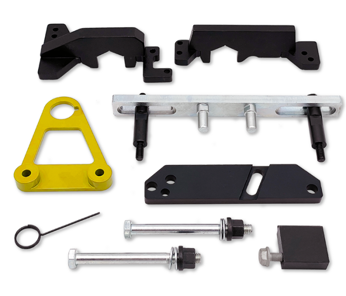 Daarnaast bevat de set een koevoet om de krukaspoelie vast te houden terwijl de centrale schroef wordt losgedraaid.