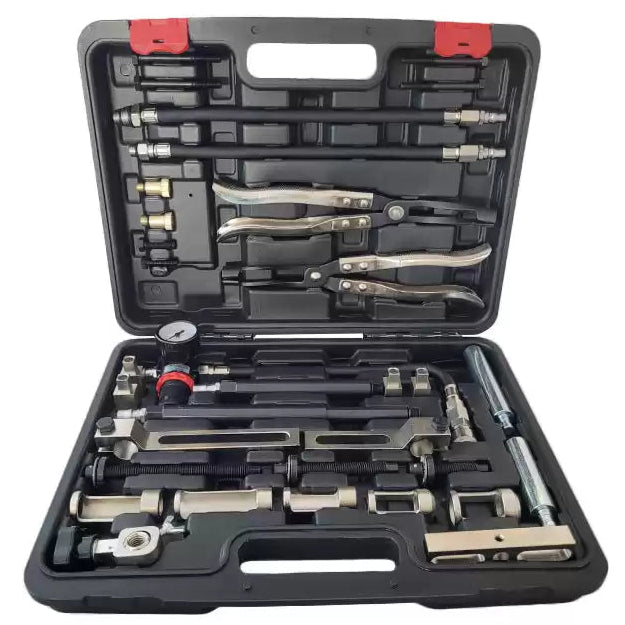 Speciaal gereedschap dat ontworpen is voor het efficiënt verwijderen en installeren van klepveren en klepsteel keerringen. Geschikt voor een breed scala aan motoren, waaronder Benz M102, M103, M104, M111, M113, M271 en M272, evenals BMW N42, N52, N62, M54, M52, M56 en M60. Daarnaast geschikt voor VW Audi, Mitsubishi en Honda motoren. Ontworpen voor precisie en duurzaamheid, zorgt deze tool voor een veilige en probleemloze werkwijze.