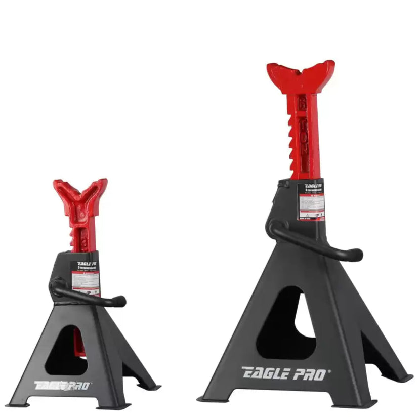 De Eagle Pro assteunen zijn in 10 verschillende hoogtes verstelbaar: 285 - 425 mm. Door de 10 verschillende hoogtes kunt u eenvoudig uw winterbanden of zomerbanden verwisselen of (winter) stallen van uw oldtimer. De assteunen zijn als set (2 stuks) verpakt.